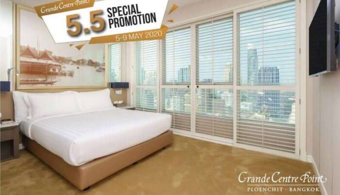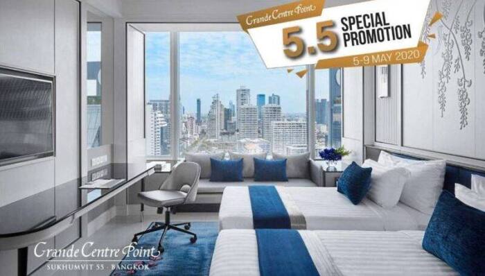 กลุ่มโรงแรม แกรนด์ เซนเตอร์ พอยต์ มอบทางเลือกสำหรับวันพักผ่อนให้คุณด้วยบัตรกำนัลห้องพักโรงแรมใจกลางกรุงเทพฯ และเมืองพัทยา ในราคาสุดพิเศษ ให้คุณเก็บไว้ใช้ได้ยาวนานถึงเดือนธันวาคม 2563 ด้วยโปรโมชั่นห้องพักราคาพิเศษสำหรับโรงแรมในเครือทั้ง 5 แห่ง “โปรโมชั่น 5.5 Super Sales” เปิดจำหน่าย 5 วันเท่านั้น!!! ตั้งแต่วันที่ 5 – 9 พฤษภาคม 2563 สามารถเข้าพักได้ทุกวันตั้งแต่วันที่ 1 มิถุนายน – 23 ธันวาคม 2563