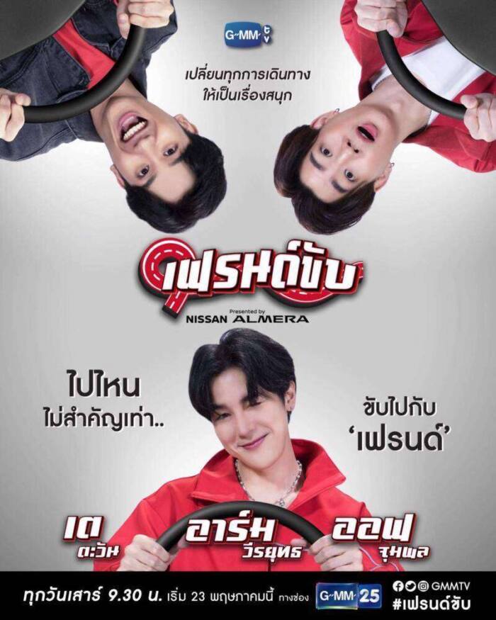 ติดตามชมรายการ “เฟรนด์ขับ Presented by NISSAN ALMERA” ทุกวันเสาร์ เวลา 9.30 น. ทางช่อง GMM25 เริ่มวันเสาร์ที่ 23 พฤษภาคมนี้ และอัพเดททุกความเคลื่อนไหวได้ที่ www.facebook.com/gmmtvofficial & IG & YouTube & Twitter : GMMTV