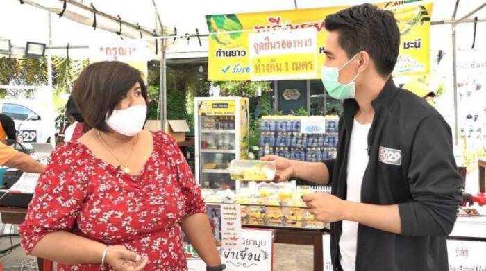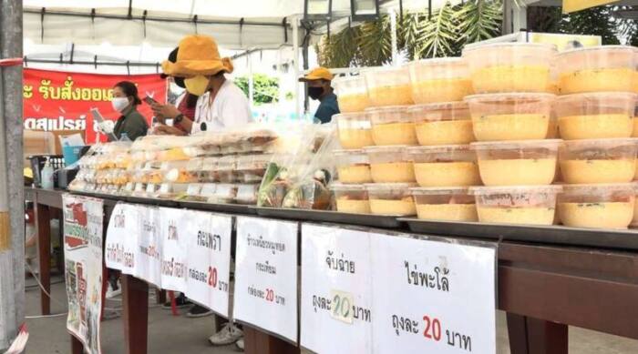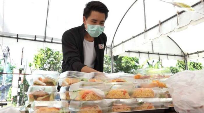 “หลักๆ เริ่มมาจากที่ผู้บริหารของทางร้านเทอเรสวิวค่ะ ที่เข้าใจถึงความยากลำบากของผู้ผลิต เกษตรกร ซัพพลายเออร์ หรือแม้กระทั่งพนักงานทุกคนภายในร้าน เขาหนักแน่นเลยว่าจะไม่ทิ้งลูกจ้างแม้แต่คนเดียว ก็เลยเกิดเป็นเต็นท์ “ครัวเทอเรส วิว” เพื่อขายอาหารกล่องราคาถูก แต่คุณภาพจากร้านอาหารเทอเรสวิวโดยตรง ช่วงแรกตั้งใจจะเปิดแค่เดือนเดียวเพราะตอนนี้ก็เริ่มเข้าสู่ช่วงปลดล็อคแล้ว แต่กลับมีผลตอบรับดีมีหลายเสียงยังอยากให้ช่วยขายต่อ เราจึงขยายเวลาเพิ่มเป็นอีกหนึ่งเดือน ผู้บริหารต่างควักทุนของตนเองเพื่อช่วยเหลือสังคมให้ผ่านพ้นไปด้วยกันค่ะ เมนูหลักจะเป็นข้าวผัดกุ้งตัวใหญ่ๆสามตัว หนึ่งอิ่มในราคา 20 บาทเท่านั้น แต่ก็มีเมนูอื่นๆให้เลือกเช่นกัน หนึ่งคนจำกัดการซื้อไม่เกินห้ากล่อง แต่ถ้าเป็นบุคลากรทางการแพทย์รับฟรีเลยค่ะ”