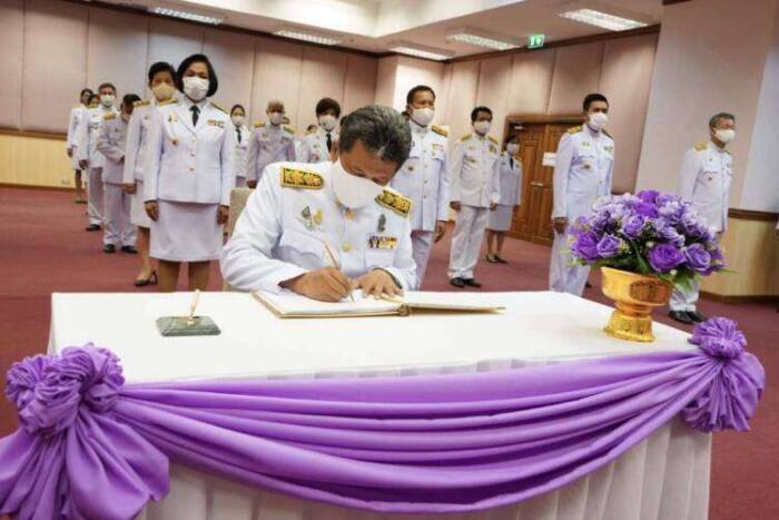 วันอังคารที่ 2 มิถุนายน 2563 นายสุทธิพงษ์ จุลเจริญ อธิบดีกรมการพัฒนาชุมชน พร้อมด้วยผู้บริหาร ข้าราชการ และพนักงานกรมการพัฒนาชุมชน ร่วมพิธีลงนามถวายพระพรชัยมงคลสมเด็จพระนางเจ้าฯ พระบรมราชินี เปิดกรวยถวายราชสักการะ และกล่าวคำถวายพระพรชัยมงคลเบื้องหน้าพระฉายาลักษณ์สมเด็จพระนางเจ้าสุทิดา พัชรสุธาพิมลลักษณ พระบรมราชินี เนื่องในโอกาสวันเฉลิมพระชนมพรรษาสมเด็จพระนางเจ้าฯ พระบรมราชินี ต่อจากนั้น ประธานในพิธีฯ ข้าราชการและพนักงานในสังกัดได้ร่วมลงนามถวายพระพร เพื่อเป็นการแสดงออกถึงความจงรักภักดีและสำนึกในพระมหากรุณาธิคุณ ณ ห้องสัมมนา 3003 กรมการพัฒนาชุมชน ศูนย์ราชการเฉลิมพระเกียรติฯ ถนนแจ้ง วัฒนะ