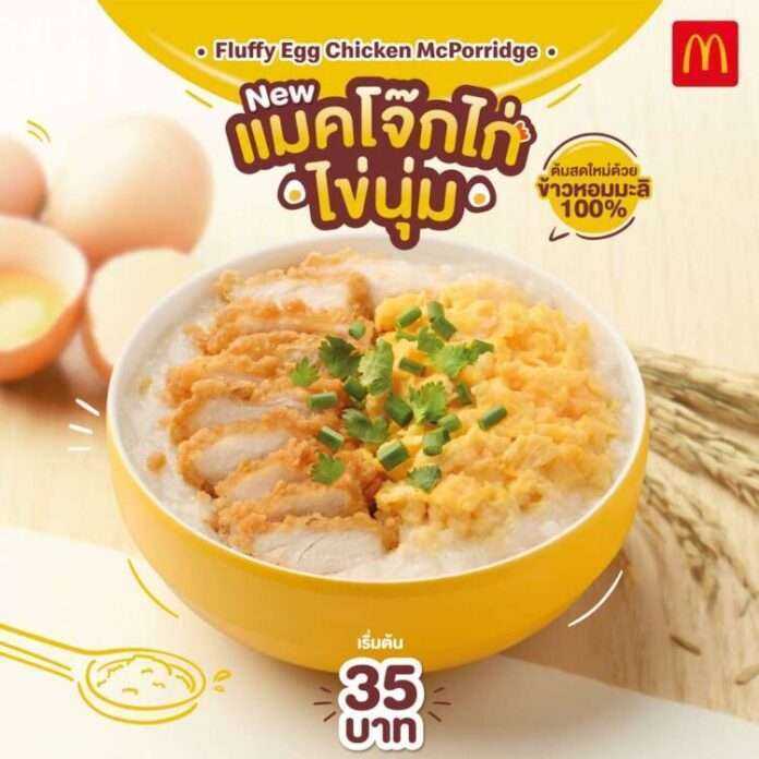 แมคโดนัลด์ เปิดตัวเมนูใหม่ อร่อยรับอรุณกับ ‘แมคโจ๊กไก่ไข่นุ่ม’ (Fluffy Chicken Egg McPorridge) หอมกรุ่นยามเช้ากับโจ๊กร้อนๆ ต้มสดใหม่ จากข้าวหอมมะลิแท้ 100% มาพร้อมไก่ทอดสีเหลืองทอง และไข่ออมเล็ตเนื้อนุ่ม ในราคาเริ่มต้นเพียง 35 บาท* หรืออร่อยจัดเต็ม อิ่มเป็นชุด เพิ่มเพียง 50 บาท* ก็ได้ฟินพร้อมแฮชบราวน์ และเครื่องดื่มหลากหลาย เลือกได้กับ กาแฟเฟรช บรู ลองแบล็คร้อน ขนาด 8 ออนซ์, น้ำส้มขนาด 8 ออนซ์ หรือ โอวัลติน สวิส ขนาด 16 ออนซ์ ตั้งแต่วันที่ 15 มิถุนายน 2563 – 9 สิงหาคม 2563 หรือจนกว่าสินค้าจะหมด ที่ร้านแมคโดนัลด์ ที่ให้บริการอาหารเช้า ตั้งแต่เวลา 22.00 น. – 11.00 น. ตรวจสอบสาขาที่ร่วมรายการได้ที่ www.mcdonalds.co.th/faq