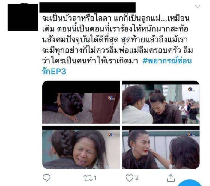 หลังจากที่ ละคร “พยากรณ์ซ่อนรัก” ช่อง 3 ตอนล่าสุด EP3 เมื่อวาน (22 มิย) “โรสิตา” (ไอซ์ ปรีชญา) และ “ธีรุตม์” (เจมส์ จิรายุ) พยายามช่วยกันไขปมความข้องใจหนึ่งในผู้ต้องสงสัย ว่าใช่ผู้ร้ายที่พยายามตามฆ่า “โรสิตา” จริงหรือไม่ นั่นคือ “ไลลา” หรือ “บัวลา” ซึ่งแสดงโดย “นุ่น-รมิดา ประภาสโนบล” ในบทดีไซเนอร์สาวผู้มีชื่อเสียง ที่ปกปิดอดีตที่ไม่น่าจดจำของตัวเอง จากเด็กบ้านนอก ที่พยายามถีบตัวเองขึ้นมาสู่วงสังคมที่เป็นที่นับหน้าถือตา จนแม่ที่แท้จริง ซึ่งแสดงโดย “เจเน็ต เขียว” ออกมาตามหา เพื่อให้กลับไปดูใจพ่อที่ป่วยหนัก แม้เจเน็ตจะมาเป็นแขกรับเชิญ แต่ต้องบอกว่า นุ่น และเจเน็ต ฟาดใจคนดูไปเต็มเหนี่ยว โดยเฉพาะซีนอารมณ์ ดราม่าหนักหน่วงของแม่ลูก ไม่ว่าจะเป็นการระเบิดอารมณ์ของนุ่น ที่พรั่งพรูความน้อยเนื้อต่ำใจในโชคชะตาของตัวเองออกมา รวมถึงมีหลายซีนที่เป็นช็อตสะเทือนใจสำหรับคนดู เมื่อเจเน็ตพยายามกระโดดสะพานฆ่าตัวตาย แต่นุ่นก็ตามมารั้งแม่ไว้ และก้มกราบเท้าสำนึกผิด โดยสิ่งหนึ่งที่ชาวเน็ต เห็นพ้องต้องกันนอกจากฝีมือการแสดงของทั้งคู่แล้ว นั่นคือสิ่งที่แฝงแง่คิดอยู่ในละครเรื่องนี้ ที่ต้องการสะท้อนสังคมในยุคนี้ได้เป็นอย่างดี คือการเตือนใจเหล่านักเลงคีย์บอร์ดที่ทำตัวเป็นไซเบอร์บูลลี่ เพียงแค่ใช้ปลายนิ้วพิมพ์แสดงความคิดเห็นต่างๆ ด้วยความคึกคะนอง ทั้งที่ไม่ได้ฟังความทั้งสองด้าน อาจนำมาซึ่งผลร้ายต่างๆ นานา โดยเฉพาะจิตใจของผู้ที่ตกเป็นเป้าโจมตี  ส่วนฟีดแบคจากชาวโซเชี่ยลจะพูดถึงอย่างไรกันบ้าง ไปดูกัน