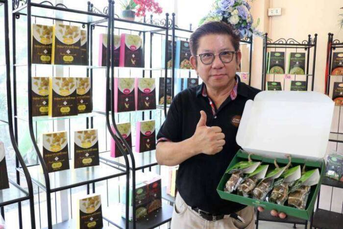 ด้าน นายดิศรณ์ มาริษชัย กรรมการผู้จัดการ บริษัทขนมแม่เอย – เปี๊ยะ แอนด์ พาย (2003) จำกัด หนึ่งในผู้ประกอบการที่ได้รับการส่งเสริมจากกรมส่งเสริมอุตสาหกรรม กล่าวว่า จากผลกระทบโควิด-19 ส่งผลให้ยอดการผลิตของบริษัทขนมแม่เอยฯ ลดลงกว่าร้อยละ 60 จากเดิมที่ผลิต 20,000 ชิ้นต่อวัน จำนวนแรงงานลดลงกว่าร้อยละ 80 จากการเดินทางกลับภูมิลำเนา ซึ่งทีมงาน กสอ. โดยศูนย์ส่งเสริมอุตสาหกรรมภาคที่ 8 ได้เดินทางเข้ามาช่วยเหลือ พร้อมให้คำแนะนำในการปรับกลยุทธ์การผลิต ด้วยการคิดต่อยอดและแปรรูปผลิตภัณฑ์ รวมถึงแนะ นำช่องทางการตลาด เพื่อเป็นการสร้างรายได้หล่อเลี้ยงภายในบริษัท รวมถึงพนักงานและประชาชนในพื้นที่ใกล้เคียงในการประกอบอาชีพเสริม ผ่านการจำหน่ายไส้ขนม อาทิ เผือกกวน มันกวน และ ถั่วกวน ไปต่อยอดธุรกิจของตนเอง ด้วยการใช้ไส้ขนมเป็นส่วนประกอบของขนมปังสังขยา หรือนำไปใช้เป็นไส้ของซาลาเปา ซึ่งล่าสุดพบว่า พนักงานและคนในพื้นที่สามารถต่อยอดเป็นธุรกิจได้จริง โดยใช้เงินลงทุนเพียง 500 บาท นอกจากนี้ ยังช่วยกระตุ้นยอดขายไส้ขนมของบริษัทฯ ได้ถึง 2 เท่า หรือคิดปริมาณ 1 ตัน ต่อวัน