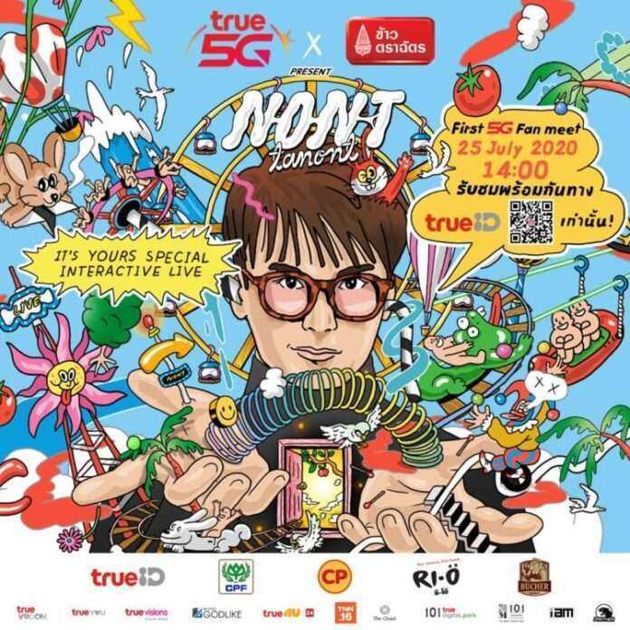 แม้สถานการณ์โดยรวมจะดีขึ้นแล้วแต่พวกเรายังคงต้องเฝ้าระวังกันต่อไป และเพื่อเป็นการผ่อนคลายบรรยากาศที่ตึงเครียดให้สดใสอีกครั้งทาง “True5G และ TrueID” ใจดี ร่วมกับ “ข้าวตราฉัตร” และ “แพนเทอร์ เอ็นเทอร์เทนเมนท์” ร่วมกันจัดงานในโปรเจกต์ First 5G Fan meet ที่จะส่งมอบความสุขพร้อมรอยยิ้มให้กับทุกคน ด้วยการเหมาโชว์สุดพิเศษของ “นนท์ ธนนท์” มาให้ทุกคนได้สนุกกันแบบที่ไม่ซ้ำใคร เพราะไม่เพียงจะได้สนุกไปกับเพลงที่นนท์เลือกมาร้องให้ทุกคนได้ฟังกันแล้วทุกคนยังได้ร่วมกิจกรรมที่สามารถช่วยครีเอทสิ่งที่คุณอยากเห็นนนท์ร้อง, เล่น ในแบบที่คุณอยากให้เป็น ตามใจแฟนคลับทุกคน ให้สนุกที่สุดแบบที่ใจคุณต้องการ เรียกว่าได้สนุกกันเต็มที่ แบบที่ยังอยู่บ้านอย่างปลอดภัย ผ่านทาง ID Station ของ TRUEID ซึ่งไลฟ์ในครั้งนี้ผู้ชมจะได้เห็นสีหน้าท่าทาง ได้พูดคุยกับนนท์ อย่างใกล้ชิด เหมือนมีนนท์ ธนนท์ มาอยู่ตรงหน้าในบ้านของคุณ และครั้งนี้จะเป็นอีกครั้งที่คุณไม่ควรพลาดที่จะได้เห็นความสามารถของ นนท์ ธนนท์ ศิลปินที่คุณรัก