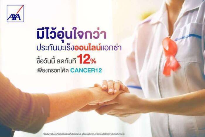 แอกซ่าประกันภัย บริษัทชั้นนำด้านธุรกิจประกันภัยระดับโลก เปิดขายแผนประกันโรคมะเร็งออนไลน์ “แอกซ่า สมาร์ทแคร์ แคนเซอร์” (AXA SmartCare Cancer) เพื่อเพิ่มทางเลือกในการดูแลทางด้านการเงินและค่าใช้จ่ายในการรักษาพยาบาล สำหรับการวางแผนการรักษาโรคมะเร็งได้อย่างรวดเร็วและมั่นใจ โดยแผนประกันโรคมะเร็งนี้จะให้ความคุ้มครองโรคมะเร็งทุกชนิดและทุกระยะ ทั้งระยะลุกลามและระยะไม่ลุกลาม เมื่อตรวจพบว่าเป็นโรคมะเร็ง ลูกค้าจะได้รับเงินชดเชยสูงสุดถึง 900,000 บาท ตามแผนประกันที่เลือกซื้อ* เบี้ยประกันเริ่มต้นเพียงวันละ 4 บาท สมัครง่าย ไม่ต้องตรวจสุขภาพ และยังสามารถลดหย่อนภาษีได้ตามเงื่อนไขที่กรมสรรพากรกำหนด ไม่เกิน 25,000 บาท
