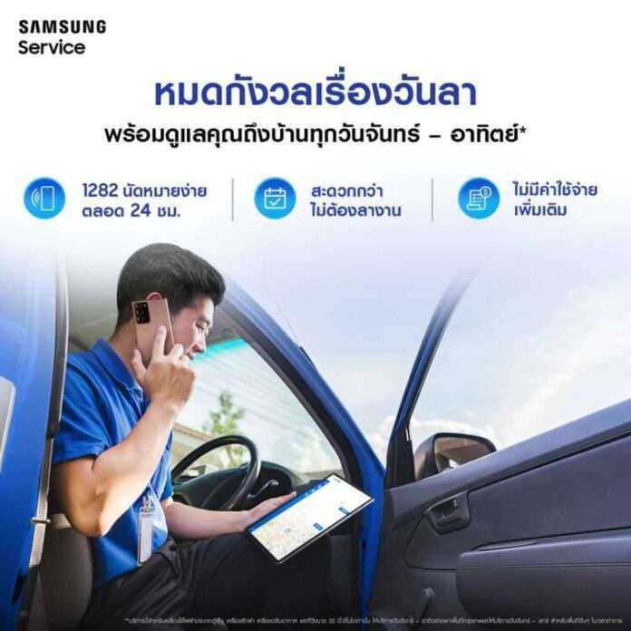 ด้วยเหตุนี้ เพื่อเป็นการเพิ่มความสะดวกสบายให้กับลูกค้า ซัมซุงจึงเพิ่มวันปฏิบัติงาน เพื่อมอบการให้บริการถึงบ้านตลอด 7 วัน (จันทร์ – อาทิตย์) สำหรับเครื่องใช้ไฟฟ้าประเภทตู้เย็น เครื่องซักผ้า เครื่องปรับอากาศ และโทรทัศน์ขนาด 32 นิ้วขึ้นไป โดยให้บริการฟรีสำหรับสินค้าที่อยู่ในระยะรับประกัน เตรียมพร้อมรองรับทุกความต้องการด้วยทีมช่างเพื่อรองรับงานซ่อมในวันหยุดสุดสัปดาห์ทั่วพื้นที่กรุงเทพฯ และบางพื้นที่ในเขตปริมณฑล