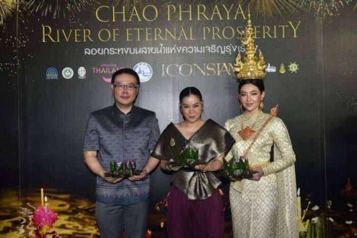 31 ตุลาคม 2563; ไอคอนสยาม, กรุงเทพฯ – บรรยากาศเทศกาลลอยกระทง ททท. ร่วมกับ ไอคอนสยาม ร่วมสืบสานประเพณีไทยอันทรงคุณค่า จัดมหาปรากฏการณ์เทศกาลลอยกระทงยิ่งใหญ่ ประจำปี 2563 “ICONSIAM CHAO PHRAYA RIVER OF ETERNAL PROSPERITY” ด้วยทัศนียภาพบนโค้งน้ำที่สวยที่สุดของแม่น้ำเจ้า พระยา เป็นจุดหมายปลายทางสำหรับทุกคนที่ต้องการสัมผัสวิถีไทยบนแม่น้ำสายประวัติศาสตร์ พร้อมจัดเตรียมกระทงน้ำแข็ง หรือกระทงจากวัสดุธรรมชาติ เพื่อการอนุรักษ์แม่น้ำเจ้าพระยาให้ดำรงอยู่อย่างยั่งยืน อิ่มเอมความสุขท่าม กลางพระจันทร์เต็มดวงด้วยการแสดง แสง สี เสียง และการแสดงสุดพิเศษจาก “เบลล่า-ราณี” แปลงโฉมเป็นนางนพมาศอันงามสง่า พร้อมเครื่องประดับทองมูลค่ารวมกว่า 20 ล้านบาท