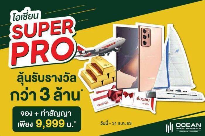 สำหรับแคมเปญพิเศษ “โอเชี่ยน Super Pro” มาพร้อมกับข้อเสนอแบบจัดเต็ม เพียงจองและทำสัญญาจ่ายเบาๆเพียง 9,999 บาท จากปกติ 55,000 บาท พร้อมลุ้นรับรางวัลมากมาย อาทิ Samsung Galaxy Note 20 Ultra (256 GB), บัตรกำนัล Central Gift Voucher มูลค่า 40,000 บาท, ทองคำหนัก 1 บาท, แพ็คเกจล่องเรือยอช์ทส่วนตัวที่โอเชี่ยน มารีน่า ยอช์ท คลับ พัทยา พร้อมตั๋วเครื่องบินไป-กลับ 2 ที่นั่ง ดินเนอร์อาหารสุดหรู และที่พัก 1 คืน อีกทั้งส่วนลดห้องชุดที่จอง 50,000 บาท รวมมูลค่ากว่า 3 ล้านบาท ตั้งแต่วันนี้ถึง 31 ธันวาคมนี้