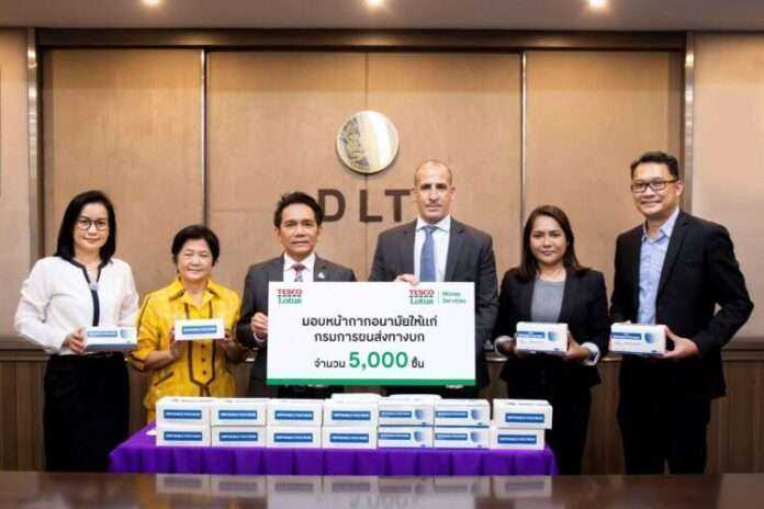 4 ธันวาคม 2563 : ‘สู้ภัยโควิด-19’ – มร.นิค สมาร์ท (ที่ 3 จากขวา) กรรมการผู้จัดการใหญ่ บริษัท เทสโก้ โลตัส มันนี่ เซอร์วิสเซส จำกัด มอบหน้ากากอนามัยจำนวน 5,000 ชิ้น ให้แก่กรมการขนส่งทางบก โดยมี นายธานี สืบฤกษ์ (ที่ 3 จากซ้าย) รองอธิบดีกรมการขนส่งทางบก (ฝ่ายบริหาร) กรมการขนส่งทางบก เป็นตัวแทนรับมอบ เพื่อสนับสนุนการปฏิบัติงานของเจ้าหน้าที่ของกรมการขนส่งทางบก เพื่อใช้ประโยชน์ในการป้องกันการแพร่ระบาดของโควิด-19