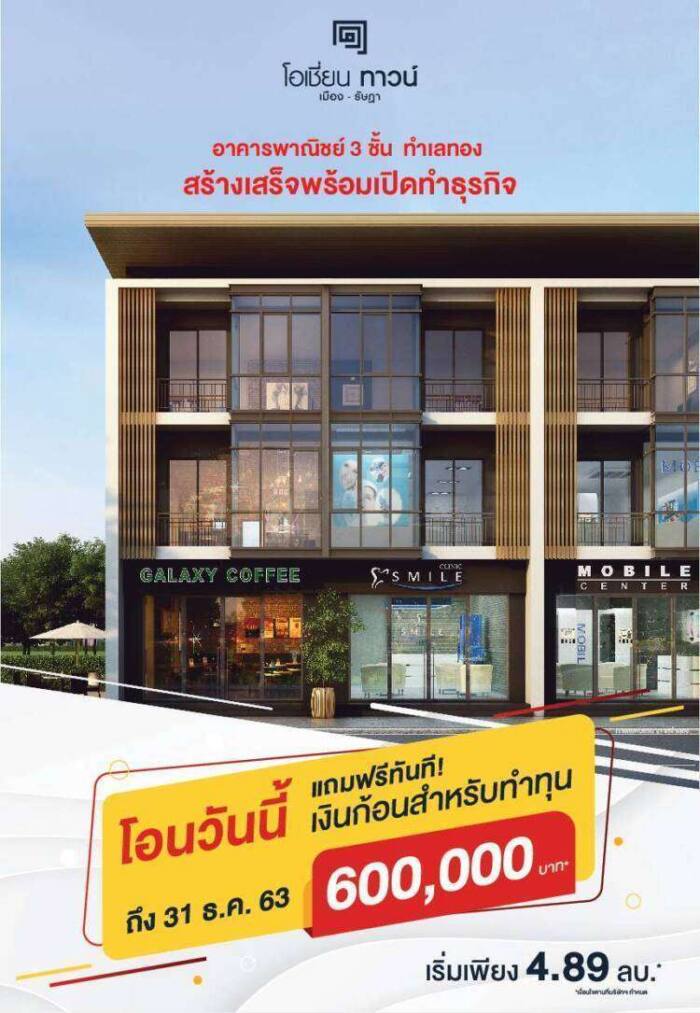 เพียงจองและโอนกรรมสิทธิ์อาคารพาณิชย์ของโครงการฯรับเงินลงทุนสำหรับประกอบกิจการทันที 600,000 บาท* ตั้งแต่วันนี้ถึง 31 ธันวาคม 2563 นี้เท่านั้น ผู้สนใจสามารถสอบถามหรือติดตามรายละเอียด เพิ่มเติมได้ทางเว็บไซต์ www.oceanproperty.co.th หรือ
