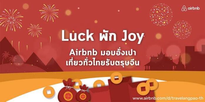 Airbnb ฉลองตรุษจีนขอร่วมแบ่งปันความสุขให้คนไทยรับปีวัว ด้วยการแจกอั่งเปาสุดพิเศษในแคมเปญ Luck พัก Joy: Airbnb มอบอั่งเปาเที่ยวทั่วไทยรับตรุษจีน ที่ให้ทุกคนร่วมลุ้นชิงโชคไปพักที่พักในฝัน พาครอบครัวเอ็นจอยเวลาแห่งความสุขในช่วงที่สามารถเดินทางได้อีกครั้ง