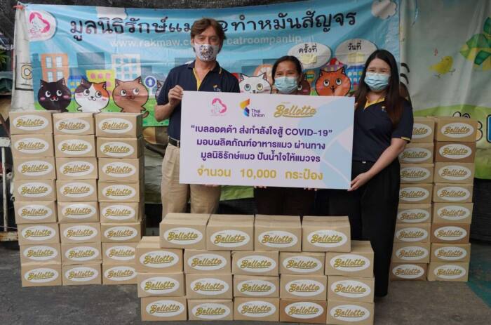 25 กุมภาพันธ์ 2564 ─ บริษัท ไทยยูเนี่ยน กรุ๊ป จำกัด (มหาชน) ซึ่งเป็นบริษัทอาหารทะเลชั้นนำระดับโลกและเป็นเจ้าของผลิตภัณฑ์อาหารแมว เบลลอตต้า บริจาคอาหารแมวจำนวน 10,000 กระป๋องให้กับมูลนิธิรักษ์แมว ปันน้ำใจให้แมวจร ซึ่งให้การช่วยเหลือแมวจรที่เจ็บป่วย ได้รับอุบัติเหตุ และแมวตามท้องถนนที่อดอยาก มูลนิธิฯ นี้ จะนำผลิตภัณฑ์เหล่านี้ไปยังศูนย์ช่วยเหลือแมวต่างๆ โรงพยาบาล และตามวัดต่างๆ ในประเทศไทย ซึ่งพบว่ามีจำนวนสัตว์ที่ต้องการความช่วยเหลือเพิ่มขึ้นจากการระบาดรอบใหม่ของ