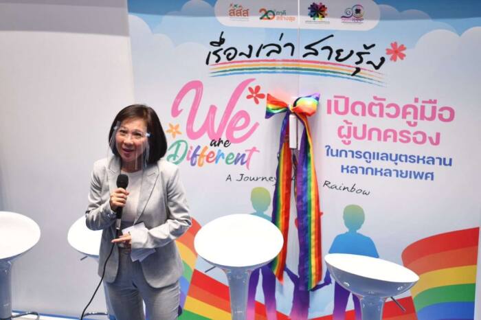 สำนักงานกองทุนสนับสนุนการสร้างเสริมสุขภาพ (สสส.) ร่วมกับมูลนิธิเครือข่ายเพื่อนกะเทยเพื่อสิทธิมนุษยชน จัดเวทีเสวนา เรื่องเล่าสายรุ้ง We Are Different : A Journey of the Rainbow เปิดตัว “คู่มือผู้ปกครองในการดูแลบุตรหลานหลากหลายเพศ” เพื่อเป็นสื่อกลางการเรียนรู้ สร้างความเข้าใจผู้ปกครองให้รู้จักวิธีดูแลเด็ก-เยาวชนที่มีความหลากหลายทางเพศ ณ สามย่านมิตรทาวน์ กรุงเทพฯ