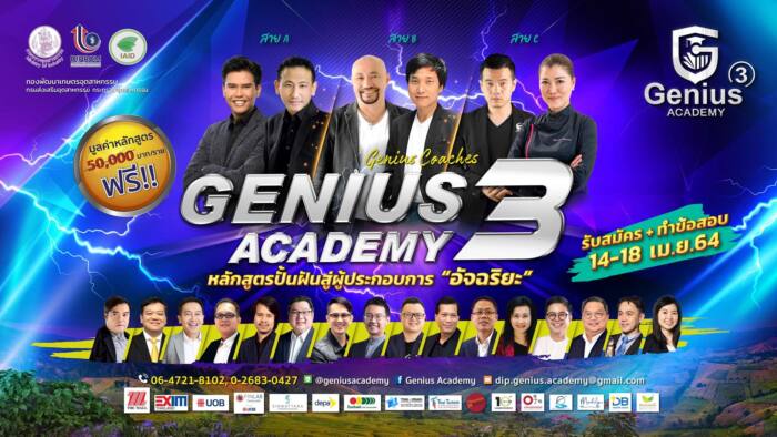 สอบถามข้อมูลเพิ่มเติมได้ที่ Facebook.com/DIPGeniusAcademy หรือ Line: @geniusacademy หรือ dip.genius.academy@gmal.com หรือโทร. 064 721 8102, 02 683 0427