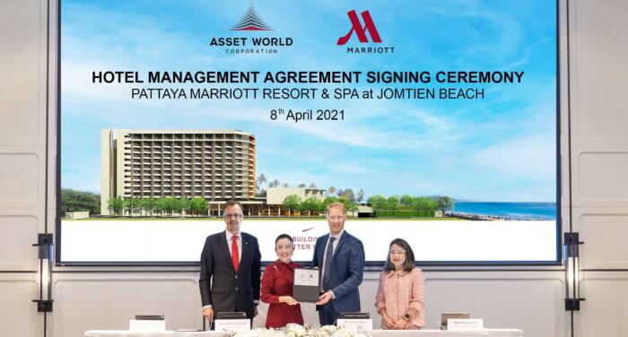 8 เมษายน 2564 – แอสเสท เวิรด์ คอร์ปอเรชั่น หรือ AWC ผู้พัฒนาอสังหาริมทรัพย์ชั้นนำของไทยที่มุ่งเน้นตอบสนองไลฟ์สไตล์แบบครบวงจร ร่วมลงนามครั้งสำคัญกับ แมริออท อินเตอร์เนชั่นแนล (Marriott International) เตรียมเดินหน้าแผนพัฒนาครั้งใหม่ในการเสริมสร้างความหลากหลายของพอร์ตโฟลิโอโรงแรมและสถานที่ท่องเที่ยวแนวไลฟ์สไตล์ ล่าสุดพัฒนาโรงแรม พัทยา แมริออท รีสอร์ท แอนด์ สปา แอท จอมเทียนบีช รีสอร์ทลักซ์ชัวรี่ระดับโลก เพื่อสร้างประสบการณ์แสนประทับใจให้กับนักท่องเที่ยวกลุ่มครอบครัวและธุรกิจ โดยวางแผนเปิดให้บริการในปี 2566 นับเป็นการต่อยอดความร่วมมือกับ แมริออท อินเตอร์เนชั่นแนลเพื่อเตรียมความพร้อมรองรับการเติบโตของโครงการเขตพัฒนาพิเศษภาคตะวันออก (อีอีซี) และเสริมความแข็งแกร่งให้กับอุตสาหกรรมท่องเที่ยวไทยให้โดดเด่นน่าจับตามอง เพื่อดึงดูดนักท่องเที่ยวทั่วโลกให้มาเยือนประเทศไทยทั้งการเดินทางเพื่อธุรกิจและการพักผ่อนหย่อนใจ นับเป็นการ เพิ่มศักยภาพให้ AWC เป็นหนึ่งในเจ้าของโรงแรมแบรนด์ในกลุ่มแมริออท อินเตอร์เนชั่นแนลรายใหญ่ที่สุดในเอเชีย แปซิฟิก