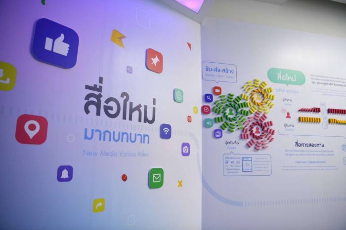 นางเบญจมาภรณ์ กล่าวต่อว่า สสส. โดยสำนักสร้างเสริมระบบสื่อและสุขภาวะทางปัญญา และศูนย์เรียนรู้สุขภาวะ ตระหนักถึงปัญหาที่เกิดขึ้น จึงรวบรวมองค์ความรู้ พัฒนาเป็นนวัตกรรมการเรียนรู้ในรูปแบบนิทรรศการ “New Me New Media #พลังสื่อเปลี่ยนสังคม” เพื่อสร้างประสบการณ์และทักษะชีวิตให้คนไทยตระหนักถึงเรื่องสุขภาวะและเป็นพลเมืองดิจิทัล รู้เท่าทันสื่อ ที่รู้จักตั้งคำถาม คิดอย่างรอบคอบ วิเคราะห์ข้อมูล สู่การเป็นพลังสำคัญร่วมแบ่งปันประสบการณ์ และสร้างแรงบันดาลใจเปลี่ยนแปลงค่านิยมสู่สังคมสุขภาวะ โดยได้นำเทคโนโลยีเข้ามาผสมผสานเพื่อสร้างประสบการณ์ให้ผู้เข้าชมเกิดการเรียนรู้ในรูปแบบที่ทันสมัย เข้าใจง่าย แบ่งเป็น 5 โซน ได้แก่ โซนที่ 1 สื่อที่เปลี่ยนไป นำเสนอพัฒนาก้าวกระโดดของสื่อ ตั้งแต่การสื่อสารทางเดียว สู่ยุคโซเชียลมีเดีย โซนที่ 2 โดมิโนแลนด์ดินแดนแห่งสื่อ จำลองโลกเสมือนให้เกิดการมีปฏิสัมพันธ์กับสื่อผ่านบททดสอบ 15 ข้อ โซนที่ 3 เรียนรู้เท่าทันสื่อ ผ่านฐานกิจกรรม 3 ฐาน คือ การฝึกมองรอบด้าน การวิเคราะห์ และการประเมินคุณค่าของสื่อ โซนที่ 4 พลังของสื่อ ทักษะพลเมืองดิจิทัล 8 ประการ สะท้อนความรับผิดชอบต่อสังคม และโซนที่ 5 สื่อสร้างสรรค์ สรรสร้างสื่อ เปิดพื้นที่ให้ทุกคนร่วมตั้งเป้าหมายสร้างสรรค์สื่อเปลี่ยนแปลงสังคม โดยคาดว่าจะมีผู้สนใจเข้าชมนิทรรศการ 1,000 คน