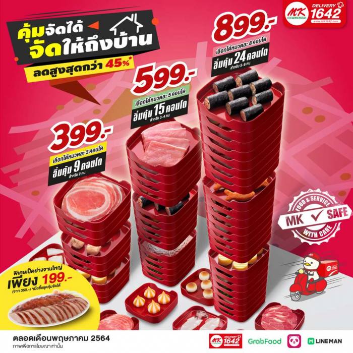 โปรแรงจัดได้สุดคุ้ม ไม่ต้องไปถึงร้าน อยู่บ้านก็จัดได้เลย ! เอ็มเค เรสโตรองต์ ปล่อยแคมเปญโปรโมชั่นใหม่ ตอบโจทย์ไลฟ์สไตล์ห่างไกลโควิด-19 เลือกจัดความอร่อยได้ตามใจ จากหลากหลายเมนูสุดโปรด อิ่มได้ในราคาสุดคุ้ม ส่งตรงถึงหน้าบ้าน กับโปรโมชั่น “MK คอนโดคุ้มจัดได้ จัดให้ถึงบ้าน” พร้อมส่วนลดสูงสุดกว่า 45% เริ่มต้นเพียงราคาเซตละ 399 บาทเท่านั้น ตลอดเดือนพฤษภาคมนี้!! อยู่บ้านปลอดภัย มั่นใจ ความอร่อยสะอาด มาตรฐาน MK