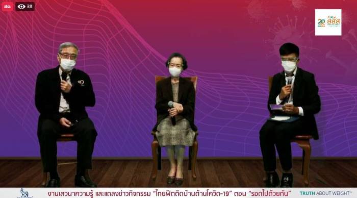 ศ.เกียรติคุณ พญ.วรรณี นิธิยานันท์ ประธานเครือข่ายคนไทยไร้พุงและนายกสมาคมโรคเบาหวานแห่งประเทศไทย กล่าวในการแถลงข่าวไทยฟิตติดบ้านต้านโควิด-19 ตอน “รอดไปด้วยกัน” ว่า การระบาดโควิด-19 ระลอกที่ 3 ตั้งแต่ 1 เมษายน – 6 พฤษภาคม 2564 มีผู้ป่วยติดเชื้อมากถึง 47,948 คน ในจำนวนนี้เสียชีวิตแล้ว 242 คน คิดเป็นร้อยละ 0.505 ซึ่งรุนแรงมากกว่า 2 ครั้งที่ผ่านมาหลายเท่าตัว และที่น่าตกใจคือ 3 ใน 4 ของผู้เสียชีวิตมีอายุ 60 ปีขึ้นไป ส่วนใหญ่อ้วน และมีโรคไม่ติดเรื้อรัง (NCDs) ได้แก่ โรคความดันสูง เบาหวาน โรคหัวใจและหลอดเลือด โรคปอดเรื้อรัง โรคไต เมื่อติดเชื้อแล้วมีความเสี่ยงมีอาการรุนแรงและเสียชีวิตสูงเป็น 2 เท่าของคนทั่วไป ดังนั้นการดูแลสุขภาพในช่วงนี้เป็นสิ่งสำคัญ โดยเฉพาะการกักตัวอยู่แต่ในบ้าน หรือทำงานจากที่บ้าน เพื่อให้อยู่รอดปลอดภัยจากโควิด-19 นอกจากดูแลสุขอนามัย ใส่หน้ากากอนามัยเมื่อออกนอกบ้าน ล้างมือบ่อยๆ ใช้อุปกรณ์การกินส่วนตัว เว้นระยะห่างระหว่างกัน ไม่ไปในที่แออัด และต้องดูแลสุขภาพให้ร่างกายแข็งแรงมีภูมิคุ้มกันที่ดีพอ การฉีดวัคซีนโควิด-19 เป็นอีกวิธีหนึ่งที่ช่วยสร้างภูมิคุ้มกันได้รวดเร็ว