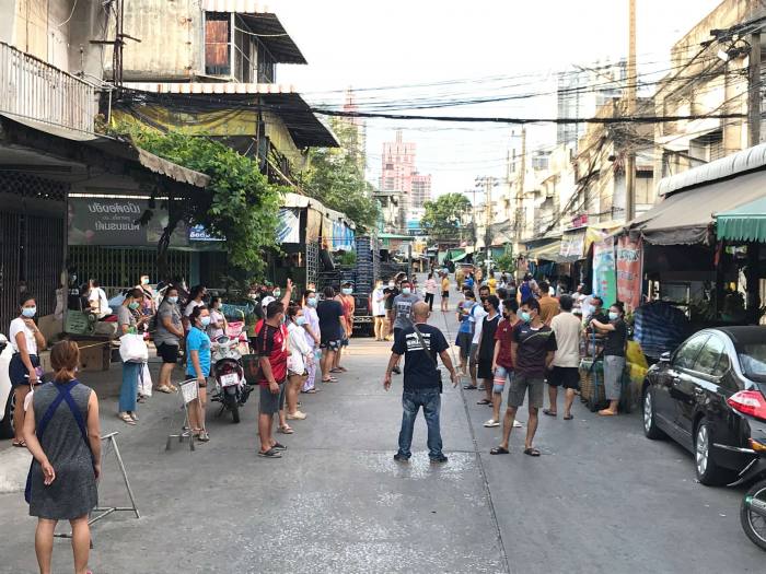 นางสาวพันชนะ วัฒนเสถียร ผู้ก่อตั้งโครงการข้าวเพื่อหมอ (Food For Fighters) เปิดเผยว่า ภายหลังที่สมาคมนิสิตเก่าจุฬาฯ ร่วมกับเครือข่าย Food For Fighters และมูลนิธิคุวานันท์ ได้ร่วมกันจัดตั้ง “ศูนย์ข้าวเพื่อหมอ” ณ ที่ทำการสมาคมนิสิตเก่าจุฬาฯ เพื่อเป็นศูนย์กลางรับบริจาคอาหาร วัตถุดิบ และสิ่งของเพื่อจัดทำกระจายถุงยังชีพสนับสนุน รพ.สนาม และช่วยเหลือชาวชุมชนคลองเตยที่กักตัวนับหมื่นคน โดยเริ่มรับบริจาคมาตั้งแต่วันที่ 7 พฤษภาคม เป็นต้นมา จนถึงขณะนี้มีตัวแทนจากชุมชนต่างๆ แจ้งความประสงค์ขอรับความช่วยเหลือมาแล้วกว่า 3 หมื่นคน จากกว่า 20 ชุมชน เช่น ชุมชนบ่อนไก่ ชุมชนคลองเตยล็อค 123 ชุมชนริมคลองวัดสะพาน วัดคลองเตยนอก (สำหรับถวายพระ) ชุมชนพัฒนาเชื้อเพลิง ชุมชนบ้านมั่นคง ชุมชนพัฒนาใหม่ ชุมชนโรงแก้ว ชุมชนโมราวรรณ 1 ชุมชนคลองลัดภาชี ชุมชนกุหลาบแดง ชุมชนโค้งรถไฟยมราช ชุมชนคลองส้มป่อย ชุมชนสามัคคีพัฒนา ชุมชนสมหวัง ชุมชนริมคลองสามเสน รวมถึงโรงพยาบาลสนาม เช่น รพ.สนาม จุฬาฯ รพ.สนาม ธรรมศาสตร์ ฯลฯ