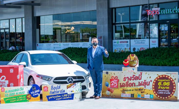 นายสเตฟาน คูม ประธานเจ้าหน้าที่บริหาร บริษัท เซ็นทรัล ฟู้ด รีเทล จำกัด ในเครือเซ็นทรัล รีเทล กล่าวว่า “ตลอดระยะเวลา 25 ปี ของการดำเนินธุรกิจ ท็อปส์พร้อมยืนหยัดเคียงข้างลูกค้าในทุกสถานการณ์ มุ่งมั่นนำเสนอสินค้าคุณภาพและบริการชั้นเลิศ มอบความคุ้มค่า คุ้มราคาในทุกการจับจ่าย พร้อมทั้งให้ความสำคัญกับการทำวิจัยและสำรวจพฤติกรรมความต้องการของผู้บริโภคมาโดยตลอด เราไม่เคยหยุดนิ่งในการพัฒนาแม้แต่วันเดียว เพื่อนำผลลัพธ์ที่ได้มาใช้พัฒนาสินค้าและบริการให้ดีมากยิ่งขึ้นกว่าเดิม สามารถตอบสนองความต้องการและสร้างความพึงพอใจสูงสุดให้กับลูกค้า และเพื่อแสดงความขอบคุณให้กับทุกความไว้วางใจที่ลูกค้ามีให้ท็อปส์มาตลอด 25 ปี เราได้สร้างสรรค์แคมเปญสุดพิเศษซึ่งเกิดขึ้นจากการสำรวจความคิดเห็นของกลุ่มลูกค้าตัวอย่างของท็อปส์พบว่าร้อยละ 60 ชื่นชอบโปรโมชั่นแบบลุ้นรางวัลมากที่สุด และต้องการเลือกของรางวัลที่ตัวเองต้องการ จึงเป็นที่มาของแคมเปญลุ้นรางวัลครั้งยิ่งใหญ่แบบที่ไม่เคยเกิดขึ้นมาก่อน “รางวัลนี้…ได้เลือกได้ลุ้น” (Celebrate as You Wish) โดยท็อปส์จัดเตรียมของรางวัลกว่า 1,602 รางวัล รวมมูลค่ากว่า 6.96 ล้านบาท มอบเป็นของขวัญให้ลูกค้าเลือกลุ้นเป็นเจ้า ของรางวัลที่ตนเองชื่นชอบให้ตรงกับความต้องการ นับเป็นอีกหนึ่งกลยุทธ์โปรโมชั่นทางการตลาดที่สอดคล้องกับเทรนด์พฤติกรรมของผู้บริโภคในปัจจุบัน ที่นอกจากเลือกซื้อสินค้าที่สามารถแสดงความเป็นตัวตนแล้ว การมอบประสบ การณ์เพื่อทำให้ลูกค้ารู้สึกถึงความเป็นคนพิเศษก็ยิ่งทำให้เกิดความประทับใจมากยิ่งขึ้น”