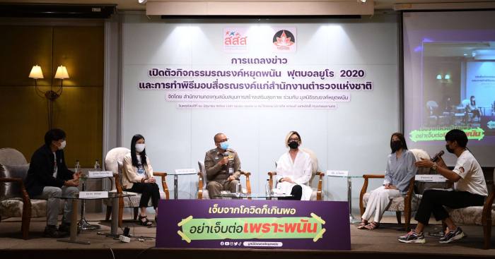 เมื่อวันที่ 10 มิถุนายน 2564 ที่ โรงแรมมิราเคิล แกรนด์ สำนักงานกองทุนสนับสนุนการสร้างเสริมสุขภาพ (สสส.) ร่วมกับมูลนิธิรณรงค์หยุดพนัน จัดเสวนารณรงค์รับมือกับการพนันช่วงการแข่งขันฟุตบอลชิงแชมป์แห่งชาติยุโรป หรือยูโร 2021 และพิธีมอบสื่อรณรงค์แก่สำนักงานตำรวจแห่งชาติ โดยมี พ.ต.อ.จีรเดช ชมบุญ ผู้กำกับการกลุ่มงานป้องกันปราบปรามอาชญากรรม กองแผนงานอาชญากรรม เป็นผู้รับมอบ เพื่อให้เยาวชนและประชาชนหยุดข้องเกี่ยวรู้เท่าทันสื่อโฆษณาที่เข้ามาชักชวนเล่นการพนัน