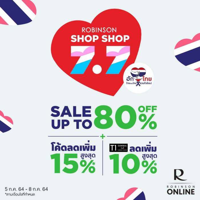 - ช้อปออนไลน์ ที่ Central App และเว็บไซต์ Central และ Robinson Online ฟิน!! ไปกับแคมเปญ Central / Robinson Shop Shop 7 ตั้งแต่วันที่ 5 – 8 กรกฎาคม 2564 จัดเต็มเอ็กซ์คลูซีฟดีล อาทิ สินค้าแบรนด์ชั้นนำลดสูงสุด 80%, แจกโค้ดลดเพิ่มสูงสุด 15% เมื่อช้อปครบ 5,000 บาท ขึ้นไป ลดสูงสุด 1,200 บาท (ตามเงื่อนไข) และพลาดไม่ได้! กับโปรโมชั่น Flash deal ไอเทมเปลี่ยนใหม่ทุกเที่ยงคืน, Super Brand Day ที่แต่ละแบรนด์จะหมุนเวียนกันมาจัดดีลสุดพิเศษ, สินค้าซื้อ 1 แถม 1 เฉพาะวันที่ 2 – 4 ก.ค. 2564 77 ท่านแรกต่อวัน เตรียมเก็บให้ทัน! กับ Special code ลดเพิ่ม 777 บาท เติมโค๊ดใหม่ทุก 7 โมงเช้า พิเศษต่อเนื่องกับบริการ ส่งไว ใน 3 ชม. จ่ายเพียง 77 บาท (จาก150 บาท) เมื่อช้อปผ่าน Central App สั่งปุ๊บได้ปั๊บไม่ต้องรอข้ามวันแค่ช้อปสินค้าที่ร่วมรายการตามเงื่อนไขกำหนด พร้อมเลือกรับบริการ “3 HRS. DELIVERY” ส่งไว ใน 3 ชม. สำหรับพื้นที่ในกรุงเทพฯ จากสาขาชิดลม แจ้งวัฒนะ บางนา พระราม 2 และรังสิต ไม่เกิน 15 กม. (ในช่วงเวลา 11.00 – 18.00 น.) และดีลสุดคุ้มอีกเพียบ