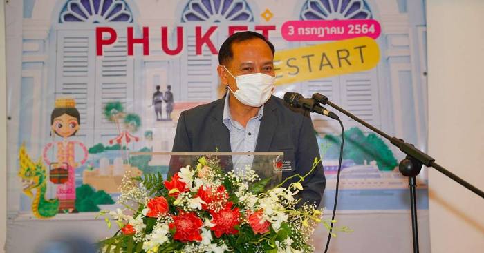 “ในอดีตประเทศไทยสร้างรายได้จากการท่องเที่ยวได้เป็นจำนวนมหาศาล โดยในปี 2562 มีมูลค่าสูงถึง 3.3 ล้านล้านบาท และจังหวัดภูเก็ตเป็นหนึ่งในจุดหมายปลายทางของนักท่องเที่ยวจากทั่วโลก สร้างรายได้เข้าสู่ประเทศเป็นลำดับต้นๆ ของจังหวัดที่มีรายได้หลักจากการท่องเที่ยว แต่การแพร่ระบาดของโรคติดเชื้อไวรัสโคโรนา 2019 (โควิด-19) ก่อให้เกิดวิกฤติการณ์ต่อผู้ประกอบการด้านการท่องเที่ยวโดยเฉพาะในกลุ่ม SME และ Micro SME โครงการ SME Restart ในครั้งนี้จึงนับเป็นแรงหนุนเสริมที่สำคัญต่อ ภูเก็ต แซนด์บ็อกซ์ ที่จะขยายผลไปสู่ภาคการท่องเที่ยวในพื้นที่อื่นๆ ต่อไป” ผู้ว่าราชการจังหวัดภูเก็ต กล่าว