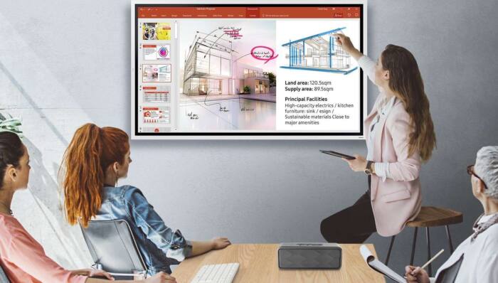 Samsung Interactive Display Flip 75 นิ้ว มี UI ที่ใช้งานและเข้าใจง่าย โหมดการเขียนที่ลื่นไหลให้ความรู้สึกเหมือนการเขียนบนกระดาษ เครื่องมือปรับแต่งรูปภาพที่ยืดหยุ่น และระบบนำทางคอนเทนต์ที่ตรงไปตรงมา นอกจากนี้หน้าจอความละเอียดระดับ 4K UHD ทำให้ได้ภาพที่อ่านง่าย และสามารถเชื่อมต่อแบบเรียลไทม์กับอุปกรณ์ส่วนตัวเพื่อแชร์คอนเทนต์ ให้ผู้ที่ร่วมชมคอนเทนต์แบบออนไลน์ได้เห็นการปรับเปลี่ยนทุกอย่างบนหน้าจออย่างชัดเจน คนควบคุมสามารถวาดเขียนลงบนหน้าจอที่ติดตั้งบนผนังได้อย่างอิสระ และยังให้ทีมทำงานร่วมกันได้พร้อมกันถึง 20 คน โดยเชื่อมต่ออุปกรณ์ส่วนตัวเพื่อแชร์คอนเทนต์แบบเรียลไทม์