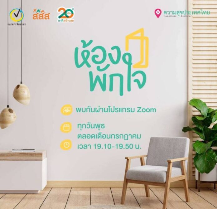 สสส.-ธนาคารจิตอาสา เผย ยอดดาวน์โหลดคู่มือสร้างภูมิคุ้มใจช่วง WFH ทะลุหมื่น ห่วงคนทำงานที่บ้าน เครียด! แนะ 5 วิธีฟื้นฟูจิตใจให้ชีวิตมีสุข ขยับกาย-ใส่ใจตัวเอง-ดูแลอารมณ์-เข้าสังคม-วางเป้าหมายระยะสั้น ชวนฝึกจิตคลายเครียด 40 นาที/วัน ด้วยนวัตกรรมหลักสูตรออนไลน์ผ่านซูม “ห้องพักใจ”