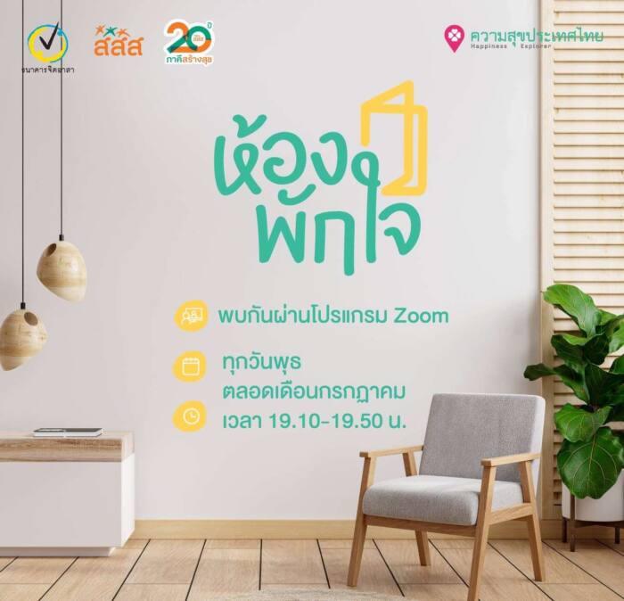 “หากมีความเครียด สิ่งที่ควรทำอันดับแรก คือ กลับมารับรู้สิ่งที่เกิดขึ้นในตัวเอง จัดการกับความคิด หาที่มาของความเครียด ซึ่งการรู้ตัวเองเป็นขั้นตอนที่สำคัญที่สุด ทำให้หาต้นตอของปัญหาและหาวิธีแก้ไขปัญหาต่อไปได้ ทั้งนี้ กิจกรรม “ห้องพักใจ” จะจัดขึ้นในวันพุธที่ 21 กรกฎาคม 2564 เข้าร่วมได้ที่ https://bit.ly/3ejmRnj ติดตามข้อมูลแนวทางการดูแลสุขภาพจิตใจตลอด 24 ชั่วโมงได้ที่ เว็บไซต์ความสุขประเทศไทย www.happinessisthailand.com” ดร.สรยุทธ กล่าว