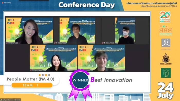 เมื่อวันที่ 24 กรกฎาคม 2564 สำนักงานกองทุนสนับสนุนการสร้างเสริมสุขภาพ (สสส.) ร่วมกับ สำนักงานคณะกรรมการสุขภาพแห่งชาติ (สช.) กระทรวงการอุดมศึกษา วิทยาศาสตร์ วิจัยและนวัตกรรม และสมาพันธ์นิสัตนักศึกษานานาชาติแห่งประเทศไทย (International Federation of Medical Students’ Associations : IFMSA) จัดงานประกาศผลการตัดสินการประกวดนโยบายและนวัตกรรมทางสังคมของคนรุ่นใหม่เพื่อแก้ไขปัญหามลพิษทางอากาศ PM2.5 ภายใต้โครงการ Thailand Youth Policy Initiative (TYPI) โดยมีเยาวชนและวัยทำงาน อายุ 16-30 ปี รวมกลุ่มจากสาขาต่างๆ 5 คนต่อทีม ร่วมส่งผลงานเข้าประกวดรวม 30 ผลงาน โดยผู้ได้รับรางวัล Best Innovation ได้แก่ ทีม People Matter (PM 4.0) ผลงานแพลตฟอร์มดิจิทัลสาธารณะ เพื่อการจัดการมาตรการ PM2.5 แบบชี้เป้า สร้างระบบกลไกการทำงานที่ตอบโจทย์บริบทของพื้นที่ ภายใต้แนวคิด “นโยบายสะท้อนเสียงประชาชนมากที่สุด”