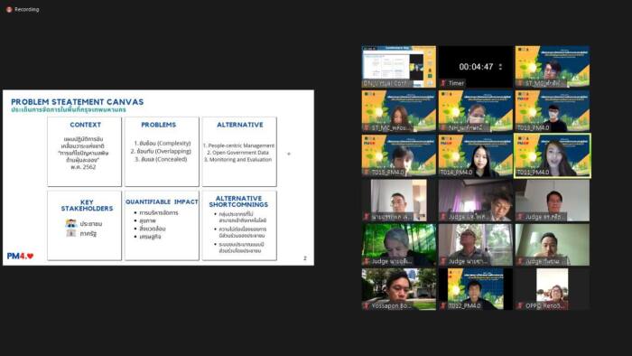 นางสาวนิศรา ปานช้าง นักวิเคราะห์นโยบายและแผนชำนาญการ กรมส่งเสริมการปกครองท้องถิ่น ผู้แทนทีม People Matter (PM 4.0) กล่าวว่า ผลงานแพลตฟอร์มดิจิทัลสาธารณะ เพื่อการจัดการมาตรการ PM2.5 แบบชี้เป้า มีแนวคิดทำให้นโยบายสะท้อนเสียงประชาชนมากที่สุด เพื่อลดช่องว่าง และเพิ่มปฏิสัมพันธ์ระหว่างภาครัฐและประชาชน ผ่านกลไกการทำงานที่ให้สื่อสารและแลกเปลี่ยนข้อมูลกันมากขึ้น เพื่อเอื้อให้เกิดการออกแบบนโยบายที่ตอบโจทย์บริบทพื้นที่และความต้องการของประชาชนมากขึ้น โดยแพลตฟอร์มออกแบบให้มี 3 คุณลักษณะ คือ 1.ชุดดัชนีนโยบายและมาตรการที่เข้ากับบริบทเฉพาะพื้นที่กับข้อมูลเปิดสาธารณะด้านคุณภาพอากาศ 2.ระบบติดตามการกำเนินนโยบายและมาตรการของภาครัฐ และ 3.พื้นที่สร้างการส่วนร่วมของภาคประชาชน ซึ่งทั้ง 3 คุณลักษณะนั้นออกแบบให้เชื่อมโยงและทำงานเกื้อหนุนกันอย่างเป็นวงจรอย่างต่อเนื่อง เพื่อให้การออกแบบนโยบายและการนำไปปฏิบัตินั้นสอดคล้องกับบริบทและเงื่อนไขเฉพาะแต่ละพื้นที่มากที่สุด