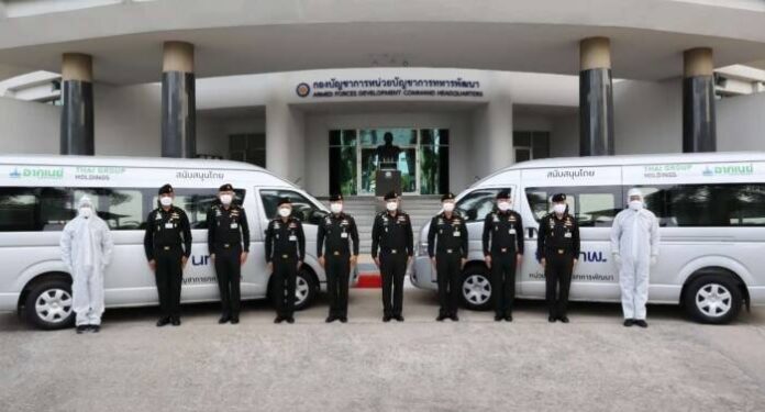 บริษัท เครือไทย โฮลดิ้งส์ จำกัด (มหาชน) หรือ ไทยกรุ๊ป โฮลดิ้งส์ และบริษัท อาคเนย์ประกันชีวิต จำกัด (มหาชน) โดย ดร.อภิชัย บุญธีรวร กรรมการบริหาร และนางภฤตยา สัจจศิลา กรรมการผู้จัดการ บริษัท อาคเนย์ประกันชีวิต จำกัด (มหาชน) ห่วงใยคนไทย จึงได้มอบรถตู้ พร้อมความคุ้มครองประกันภัยรถยนต์ ชั้น 1 และ พ.ร.บ.รถยนต์ จำนวน 2 คัน มูลค่ากว่า 1.4 ล้านบาท ให้แก่หน่วยบัญชาการทหารพัฒนา กองบัญชาการกองทัพไทย โดยมีพลเอกนเรนทร์ สิริภูบาล ผู้บัญชาการหน่วยบัญชาการทหารพัฒนา และคณะเป็นผู้รับมอบ เพื่อสนับสนุนภารกิจกำลังพลในการเคลื่อนย้ายผู้ป่วยโควิด-19 เข้ารับการรักษาตัวในโรงพยาบาลสนามบุษราคัม