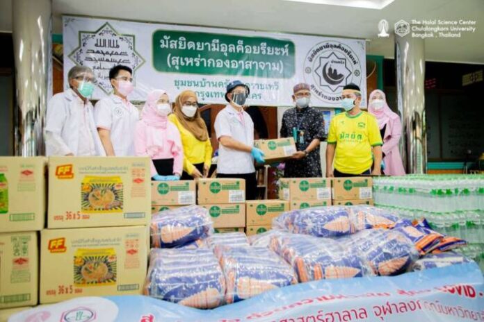 ศูนย์วิทยาศาสตร์ฮาลาล จุฬาลงกรณ์มหาวิทยาลัย โดย รศ.ดร.วินัย ดะห์ลัน ผู้อำนวยการศูนย์วิทยาศาสตร์ฮาลาล จุฬาลงกรณ์มหาวิทยาลัย นำทีมคณะผู้บริหารและบุคลากรลงพื้นที่แจกถุงยังชีพ จำนวน 1,500 ชุด เพื่อช่วยเหลือประชาชนที่ได้รับผลกระทบจากการแพร่ระบาดของเชื้อไวรัสโควิด-19 ระลอกใหม่ ที่ส่งผลกระทบในวงกว้าง โดยลงพื้นที่ประกอบด้วย ชุมชนมหานาค ชุมชนพญาไท (มัสยิดดารุ้ลอะมาน พญาไท) ชุมชนบ้านครัว (มัสยิดยามีอุล ค็อยรียะห์ บ้านครัว) และมัสยิดซอลีฮุสสลาม (บางชัน)