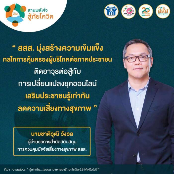 นายชาติวุฒิ วังวล ผู้อำนวยการสำนักสนับสนุนการควบคุมปัจจัยเสี่ยงทางสุขภาพ สำนักงานกองทุนสนับสนุนการสร้างเสริมสุขภาพ (สสส.) กล่าวว่า สถานการณ์การแพร่ระบาดของโควิด-19 ในประเทศไทย มีตัวเลขผู้ติดเชื้อมากขึ้นเป็นสถิติใหม่ทุกวัน ทำให้ประชาชนใส่ใจสุขภาพเพิ่มภูมิคุ้มกันตัวเอง หาซื้อผลิตภัณฑ์สุขภาพมาบริโภค โดยเฉพาะทางออนไลน์ สอดคล้องกับข้อมูลมูลค่าพาณิชย์อิเล็กทรอนิกส์ ปี 2562 โดยสำนักงานพัฒนาธุรกรรมทางอิเล็กทรอนิกส์ (องค์การมหาชน) พบว่า ปี 2562 มีการบริโภคสินค้าออนไลน์เพิ่มขึ้น 36.36% จากปี 2561 ประกอบกับการขายสินค้าทางออนไลน์เติบโตขึ้นอย่างมากในปัจจุบัน การบริโภคสินค้าออนไลน์จึงมีแนวโน้มเพิ่มสูงขึ้น ขณะที่ผู้ประกอบการหรือผู้ค้าบางรายนำผลิตภัณฑ์มาจำหน่ายโดยให้ข้อมูลสรรพคุณเท็จ โฆษณาอวดอ้างเกินความจริง โดยแอบอ้างว่า ผลิตภัณฑ์ใช้ป้องกันรักษาโควิด-19 ได้ เพื่อกระตุ้นยอดขาย ปัญหาผลิตภัณฑ์สุขภาพที่เป็นอันตรายต่อสุขภาพจากการใช้ที่ไม่เหมาะสมเพราะได้รับข้อมูลและความรู้ความเข้าใจที่ไม่ถูกต้องของผู้บริโภค จึงเป็นปัญหาที่นำไปสู่ผล กระทบต่อสุขภาพและสูญเสียค่าใช้จ่ายของประชาชน