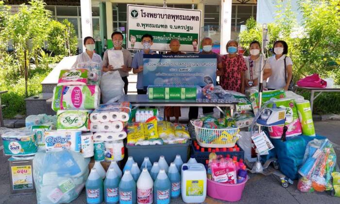 19 ส.ค.2564- หลวงพ่อสิงห์โต โฆษโก เจ้าอาวาสวัดป่าสติปัฏฐานญาณสัมปันโน พร้อมด้วยศิษยานุศิษย์ บริจาคเครื่องให้อากาศผสมออกซิเจนอัตราการไหลสูง รุ่น Airvo2 จำนวน 1 เครื่อง ราคา 200,000 บาท แอมบูแบคสำหรับผู้ใหญ่ รุ่น Silicone Resuscitator Adult P/Off + Case จำนวน 5 ชุด และเกจ์วัดแรงดันออกซิเจนจำนวน 3 ชุดเพื่อใช้สำหรับดูแลรักษาผู้ป่วยติดเชื้อโควิด-19 และชุด PPE เพื่อป้องกันเชื้อโรคและละอองเคมีให้แก่บุคลากรทางการแพทย์ นอกจากนี้ ยังมีน้ำยาและอุปกรณ์ทำความสะอาดต่างๆ อาทิ กระดาษชำระ ยาจุดกันยุง น้ำยาล้างจาน น้ำยาล้างห้องน้ำพร้อมแปรงขัด ฯลฯ มอบให้แก่โรงพยาบาลพุทธมณฑล อำเภอพุทธมณฑล จังหวัดนครปฐม โดยนายแพทย์ปริพนท์ จุลเจิม ผู้อำนวยการโรงพยาบาลพุทธมณฑลเป็นผู้รับมอบบริจาค ณ โรงพยาบาลพุทธมณฑล