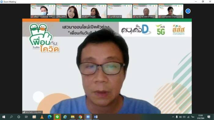 ดร.สุปรีดา อดุลยานนท์ ผู้จัดการกองทุนสนับสนุนการสร้างเสริมสุขภาพ (สสส.) กล่าวว่า สถานการณ์การระบาดโควิด-19 พบผู้ติดเชื้อโควิด-19 ที่เข้ารักษาด้วยระบบ Home-Community isolation ยังมีจำนวนมาก และคาดการณ์แนวโน้มว่าจะมีจำนวนเพิ่มขึ้นอย่างต่อเนื่องในระยะ 2 เดือนนี้ (เดือนกันยายน-ตุลาคม) ที่สำคัญสมาชิกในครอบครัวของผู้ติดเชื้อมีอัตราการติดเชื้อสูง เนื่องจากต้องสัมผัสใกล้ชิดเป็นเวลานานถึง 24 วัน ส่งผลให้เกิดความวิตกกังวล เครียด รวมถึงการถูกตีตราจากคนในชุมชน สสส. จึงเร่งหารือกับ กลุ่มคนตัวD และภาคีเครือข่าย ริเริ่มโครงการ “เพื่อนกันวันติดโควิด .. สื่อฟื้นฟูสุขภาวะผู้ป่วยและคนใกล้ชิดในสถานการณ์แพร่ระบาดของเชื้อโควิด-19” โดยพัฒนาช่องทางสื่อออนไลน์ ผ่านช่องรายการ “เพื่อนกัน วันติดโควิด” เพื่อฟื้นฟูสุขภาพทั้งด้านร่างกายและจิตใจที่เหมาะสมแก่คนไทย โดยเฉพาะผู้ติดเชื้อโควิด-19 ที่เข้ารักษาด้วยระบบ Home-Community isolation และสมาชิกในครอบครัว รวมถึงผู้ที่ต้องดูแลผู้ที่ติดเชื้อ ลดความเสี่ยงต่อการเกิดปัญหาสุขภาพในระยะยาว