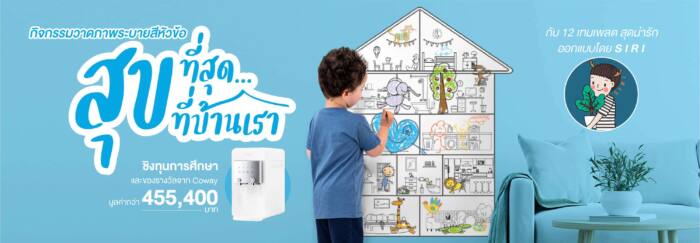 กิจกรรมพิเศษในครั้งนี้ COWAY ได้ร่วมกับ SIRI นักเขียนและนักวาดภาพชื่อดังรวมทั้งศิลปินนักวาดภาพชื่อดังอื่นๆอีกมากมาย สร้างสรรค์เทมเพลตมุมบ้าน 12 มุม ให้น้อง ๆได้แต่งแต้มสีสันตามจินตนาการ เพื่อร่วมเข้าโครงการประกวดภาพวาดระบายสีกับ COWAY โดยผู้ส่งผลงานจะสามารถชิงทุนการศึกษาและของรางวัล รวมมูลค่ากว่า 455,400 บาท