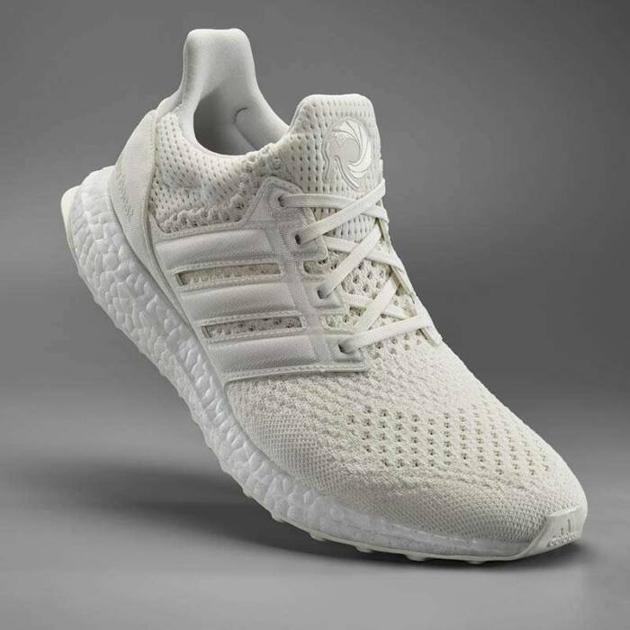 สำหรับรองเท้าคู่แรกที่จะมีการวางจำหน่ายก็คือ UltraBOOST DNA White Tuxedo ซึ่งเป็นรองเท้ารุ่นพิเศษที่แสดงถึงสไตล์อันโดดเด่นของเจมส์ บอนด์ โดยการใช้สีขาวเป็นหลักและตกแต่งด้วยสัญลักษณ์ของเจมส์ บอนด์ ที่บริเวณลิ้นรองเท้า ให้ความรู้สึกที่เรียบง่ายและหรูหราตามแบบฉบับของยอดสายลับระดับโลก