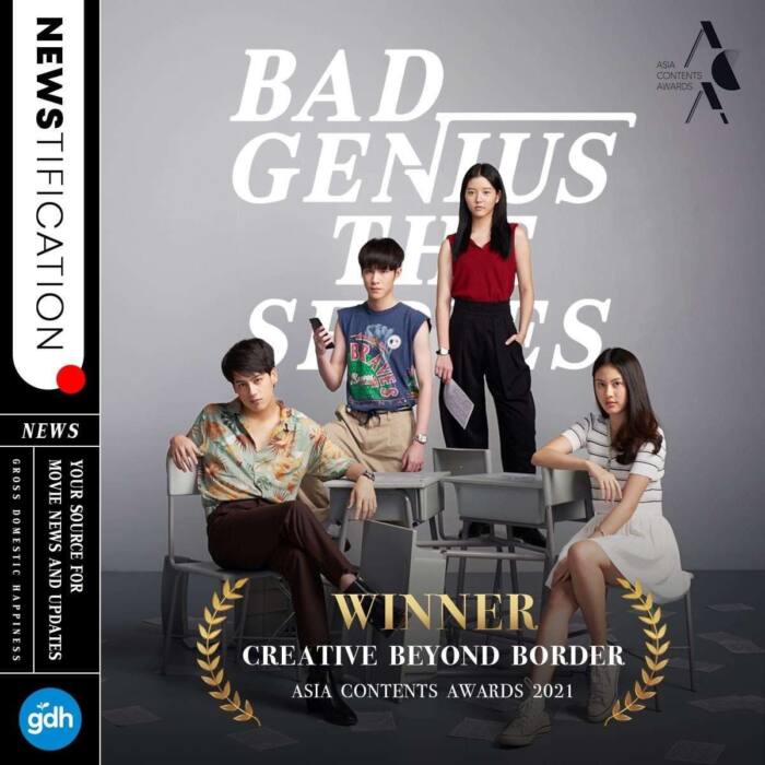 ละคร “ฉลาดเกมส์โกง” (BAD GENIUS THE SERIES) ค่าย จีดีเอช สร้างชื่อให้วงการละครไทย ด้วยการคว้ารางวัลจากเวที “Asia Contents Awards” (ACA) ครั้งที่ 3 ในสาขา Creative Beyond Border มาครองร่วมกับซีรีส์จากประเทศญี่ปุ่น “Alice in Borderland“ ทั้งนี้ งาน Asia Contents Awards (ACA) จัดขึ้นเป็นส่วนหนึ่งของเทศกาลภาพยนตร์นานาชาติปูซาน Busan International Film Festival (BIFF) ประเทศเกาหลีใต้
