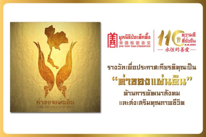 รางวัลโล่ประกาศเกียรติคุณเป็น “ค่าของแผ่นดิน” ด้านการพัฒนาสังคมและการส่งเสริมคุณภาพชีวิต จึงถือเป็นอีกหนึ่งแรงกำลังใจสำคัญที่ “มูลนิธิป่อเต็กตึ๊ง” จะนำมาเป็นพลังบวกในการส่งต่อความช่วยเหลือให้กับผู้คนในสังคมในรูปแบบต่าง ๆ เพื่อช่วยพัฒนาคุณภาพชีวิต และสร้างความสุขให้กับชุมชน สังคม และประเทศชาติได้อย่างยั่งยืน