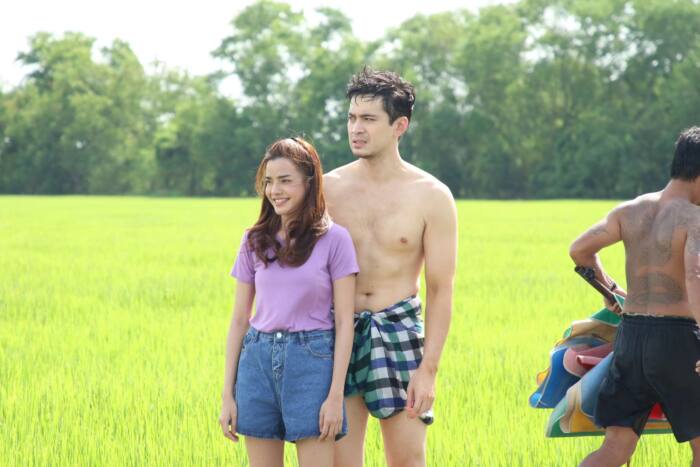 เป็นฉากที่ อนวัช(อินดี้)ไปบ้านทุ่งทองกับปอฝ้าย(จูน) เพื่อหาไอเดียใหม่ๆในการคิดงานของบริษัท แต่แล้วปอฝ้ายเดินไปตามอนวัชที่ทุ่งนา ก็เห็นชุดของอนวัชวางไว้ริมบึง เลยคิดว่าอนวัชพลาดจมน้ำ เลยรีบกระโดดไปช่วย แต่อนวัชปรากฎตัว ยืนหัวเราะปอฝ้ายชอบใจอยู่บนฝั่ง ปอฝ้ายโมโห อดต่อว่าอนวัชรไม่ได้ อนวัชเลยขอโทษ และดึงปอฝ้ายขึ้นมา ทั้งสองเลยล้มเข้าหากัน ปลัดวันรบ(มาร์ค) มาเห็นคิดว่าปอฝ้ายถูกลวนลาม ทั้งคู่ต่อยกันจนผ้าขาวม้าอนวัชหลุด