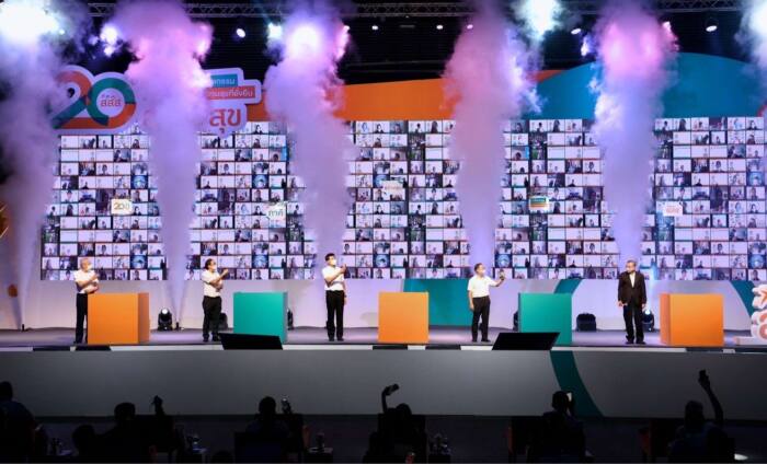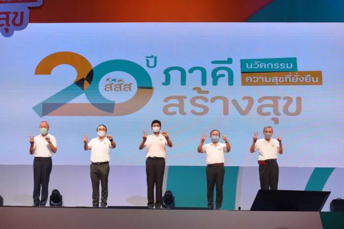 เมื่อวันที่ 10 พฤศจิกายน ที่โรงแรมเซ็นทารา แกรนด์ แอท เซ็นทรัลเวิลด์ ดร.สาธิต ปิตุเตชะ รัฐมนตรีช่วยว่าการกระทรวงสาธารณสุข ในฐานะรองประธานกรรมการกองทุนสนับสนุนการสร้างเสริมสุขภาพ (สสส.) คนที่ 1 เป็นประธานในพิธีเปิดงาน “20 ปี ภาคีสร้างสุข : นวัตกรรมความสุขที่ยั่งยืน” เนื่องในโอกาสครบรอบ 20 ปี ซึ่งจัดขึ้นระหว่างวันที่ 8–10 พฤศจิกายน เพื่อสานพลังภาคีเครือข่ายร่วมขับเคลื่อนงานสร้างเสริมสุขภาวะ สร้างนวัตกรรมใหม่ๆ เพื่อเปลี่ยนแปลงพฤติกรรม วิถีชีวิต และสภาพแวดล้อมนำไปสู่สังคม สุขภาวะที่ยั่งยืนในทศวรรษถัดไป ในรูปแบบไฮบริดที่ผสมผสานการประชุมในสถานที่จริง และรูปแบบออนไลน์ สอดคล้องกับชีวิตวิถีใหม่ (New Normal) โดยบริหารจัดการตามมาตรการของภาครัฐในการป้องกันการแพร่ระบาดของโควิด-19 และจัดประชุมที่ดีต่อสุขภาพ (Healthy Meeting) ภายในงานมีการเสนอทิศทางและเป้าหมายในระยะ 10 ปี ของ สสส. และประกาศปฏิญญาสร้างเสริมสุขภาวะ โดยมีผู้ทรงคุณวุฒิ ภาคีเครือข่าย และภาคียุทธศาสตร์ ได้แก่ หน่วยงานภาครัฐ กระทรวง กรมต่างๆ รวมผู้เข้าร่วมประชุมกว่า 2,000 คน