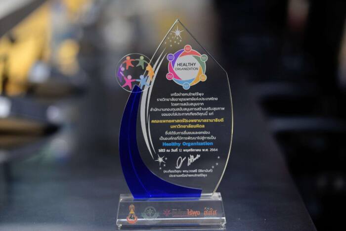 ศ.เกียรติคุณ พญ.วรรณี นิธิยานันท์ ประธานเครือข่ายคนไทยไร้พุง ราชวิทยาลัยอายุรแพทย์แห่งประเทศไทย มอบโล่ประกาศเกียรติคุณ ให้แก่คณะแพทยศาสตร์โรงพยาบาลรามาธิบดี มหาวิทยาลัยมหิดล ในการนำแนวคิดการพัฒนาองค์กรไปสู่การเป็นองค์กรสุภาพดี (Healthy Organization) ภายใต้โครงการ “การสร้างเสริมสุขภาพประชาชนวัยทำงานในองค์กร ด้วยการวางระบบ Intervention & Tools เพื่อพัฒนาองค์กรไปสู่การเป็น Healthy Organization” สนับสนุนโดยสำนักงานกองทุนสนับสนุนการสร้างเสริมสุขภาพ (สสส.) โดยมี ศ.คลินิก นพ.อาทิตย์ อังกานนท์ รักษาการแทนรองคณบดีและผู้อำนวยการโรงเรียนแพทย์รามาธิบดี คณะแพทยศาสตร์โรงพยาบาลรามาธิบดี มหาวิทยาลัยมหิดล เป็นผู้รับมอบ