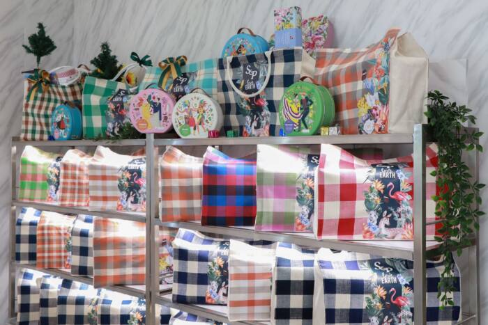 นอกจากนี้ ไฮไลท์พิเศษยังมีกระเป๋าผ้ารักษ์โลกคอลเลคชั่น 2022 ที่ผลิตจากผ้าขาวม้าของวิสาหกิจชุมชน จ.อำนาจเจริญ เพื่อตอกย้ำการดำเนินธุรกิจอย่างยั่งยืนของ เอส แอนด์ พี