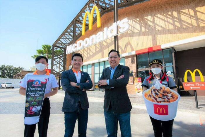 19 มกราคม 2565 – บริษัท แมคไทย จำกัด ผู้ดำเนินธุรกิจอาหารบริการด่วนภายใต้แบรนด์แมคโดนัลด์ในประเทศ ไทย ร่วมกับ บริษัท หยั่น หว่อ หยุ่น คอร์ปอเรชั่น กรุ๊ป จำกัด ผู้ผลิตเครื่องปรุงรสภายใต้แบรนด์เด็กสมบูรณ์ เปิดตัวผลิตภัณฑ์ใหม่ “ไอศกรีมหมูหยองพริกเผา” ที่เกิดจากการศึกษาความต้องการของผู้บริโภคที่ชอบทดลองสิ่งแปลกใหม่และอร่อย เกิดเป็นเมนูฟิวชั่นใหม่ที่ผสมผสานผสมผสานสองความต่างสุดขั้วระหว่างไอศกรีมเนื้อเนียน หวานหอม จากแมคโดนัลด์ และน้ำพริกเผารสชาติเข้มข้น จัดจ้าน ของเด็กสมบูรณ์ พร้อมยกระดับความฟินด้วยหมูหยองกรุบกรอบ ตั้งเป้าการแนะนำผลิตภัณฑ์ครั้งนี้จะสร้างความแปลกใหม่ให้กับตลาด ตรงใจลูกค้าที่ชอบลองสินค้าที่ทั้งแปลกและใหม่ และสามารถเชื่อมฐานลูกค้าของทั้งสองแบรนด์เข้าด้วยกัน เริ่มจำหน่ายตั้งแต่วันที่ 19 มกราคม ถึง 5 เมษายนนี้