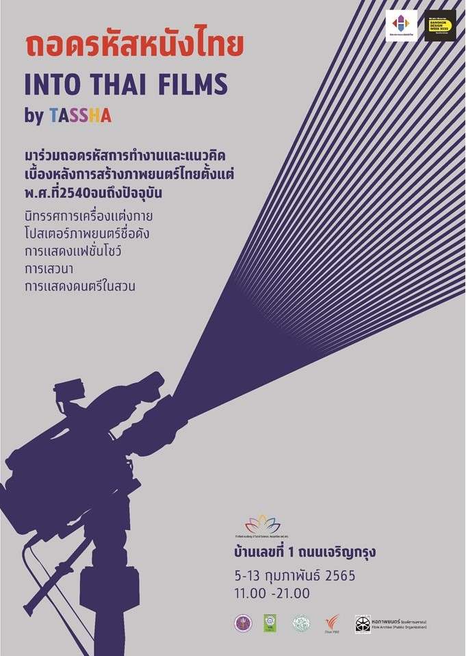 งาน “นิทรรศการภาพยนตร์ Into Thai Films by TASSHA ถอดรหัสหนังไทย” ครั้งนี้จะจัดให้มีขึ้นระหว่างวันที่ 5-13 กุมภาพันธ์ 2565 ภายในงานนิทรรศการ Bangkok Design Week 2022 ณ บ้านหมายเลข 1 ถนนเจริญกรุง เขตบางรัก กรุงเทพมหานคร