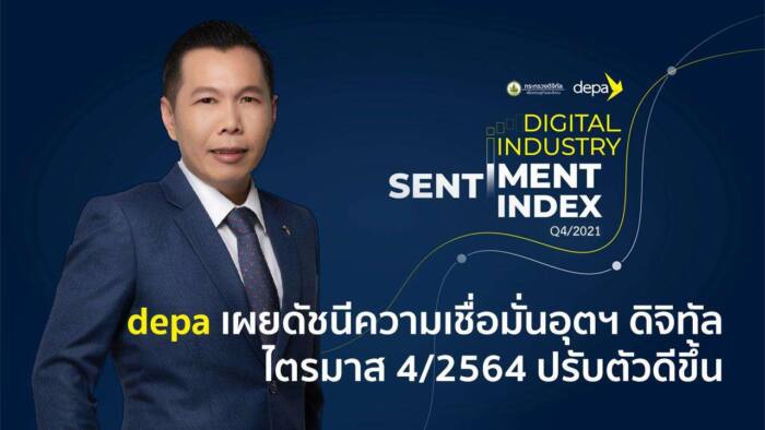 สำนักงานส่งเสริมเศรษฐกิจดิจิทัล หรือ ดีป้า แถลงผลการสำรวจดัชนีความเชื่อมั่นอุตสาหกรรมดิจิทัลไทย (Digital Sentiment Index) ไตรมาส 4 ประจำปี 2564 ใน 5 กลุ่มอุตสาหกรรมย่อย ประกอบด้วย กลุ่มอุตสาหกรรมฮาร์ดแวร์และอุปกรณ์อัจฉริยะ (Hardware and Smart Device) กลุ่มอุตสาหกรรมซอฟต์แวร์ (Software) กลุ่มอุตสาหกรรมบริการด้านดิจิทัล (Digital Service) กลุ่มอุตสาหกรรมดิจิทัลคอนเทนต์ (Digital Content) และกลุ่มอุตสาหกรรมโทรคมนาคม (Telecommunication) โดยดัชนีความเชื่อมั่นฯ อยู่ที่ระดับ 52.5 เพิ่มขึ้นจาก 45 ในไตรมาส 3 ซึ่งเป็นการปรับเพิ่มขึ้นในเกือบทุกองค์ประกอบ ทั้งด้านผลประกอบการ ด้านปริมาณการผลิต/การค้า/การบริการ ด้านคำสั่งซื้อ/โครงการที่ได้ทำ/ทำงานร่วมกับพันธมิตร/คู่ค้า ด้านการจ้างงาน และด้านการลงทุนเพื่อประกอบการ