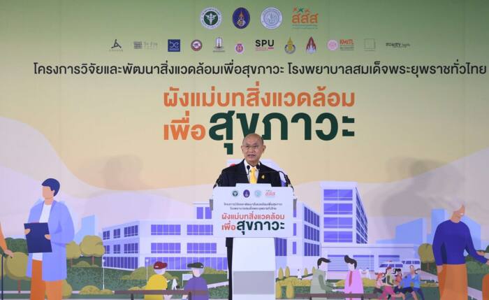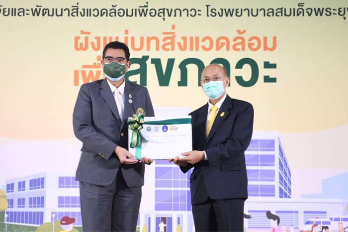 พญ.ขจีรัตน์ ปรักเอโก ผู้อำนวยการสำนักสนับสนุนการพัฒนาระบบสุขภาพ สสส. กล่าวว่า สสส. ร่วมกับ กลุ่มวิจัยสิ่งแวดล้อมสรรค์สร้างเพื่อสุขภาวะ คณะสถาปัตยกรรมศาสตร์ มหาวิทยาลัยเกษตรศาสตร์ เห็นความสำคัญของการพัฒนาให้เกิด “ต้นแบบพื้นที่สุขภาวะในโรงพยาบาล” ที่มีการจัดการสิ่งแวดล้อมที่เอื้อต่อสุขภาวะมาอย่างต่อเนื่อง ปัจจุบันได้ดำเนิน โครงการวิจัยและพัฒนาสิ่งแวดล้อมเพื่อสุขภาวะ รพ.สมเด็จพระยุพราช 21 แห่งทั่วประเทศ เพื่อให้ได้ต้นแบบของผังแม่บทและแผนพัฒนาเชิงกายภาพที่แสดงการใช้ประโยชน์ของพื้นที่ในโรงพยาบาลขนาดต่างๆจากกระบวนการมีส่วนร่วมของทุกภาคส่วนในชุมชน สอดคล้องกับการใช้งานจริงของบุคลากรในโรงพยาบาลและผู้มาใช้บริการ มีการปรับสภาพแวดล้อมที่เหมาะสม และคำนึงถึงปัจจัยที่มีผลต่อสุขภาวะของผู้คนทุกกลุ่ม รวมถึงสอดคล้องกับแผนพัฒนาระบบสุขภาพ (Service plan) พร้อมส่งมอบให้กองแบบแผน กรมสนับสนุนบริการสุขภาพ กระทรวงสาธารณสุข พิจารณาและปรับใช้กับการขยายตัวในอนาคตของโรงพยาบาลในพื้นที่อื่นต่อไป