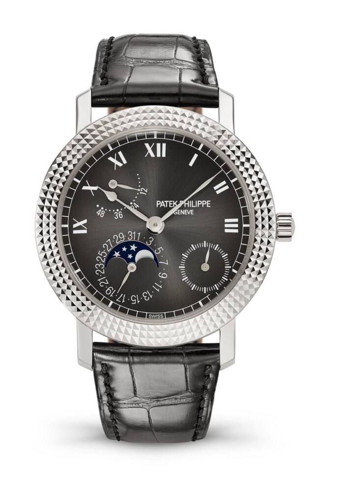 Ref. 5057G-010 Calatrava นี้ เป็นนาฬิกาข้อมือ รุ่น Limited Edition ที่ทำจากทองคำขาว และจะจัดผลิตขึ้นโดยเฉพาะเพื่อใช้ในการเฉลิมฉลอง 50 ปี โดยได้ผลิตขอบตัวเรือนเป็นแบบแกะสลักสามแถว สลักลวดลายแบบหัวตะปูด้วยเทคนิค กิโยเช่ ซึ่งเป็นหนึ่งในเอกลักษณ์ดั้งเดิมที่ Patek Phillip ได้ประดิษฐ์ไว้เพื่อ Cortina Watch ในปี 1997 เพื่อร่วมฉลอง 25 ปีแห่งคู่ค้าทางธุรกิจด้วยกัน ทั้งนี้ความพิเศษของรุ่นนี้ จะมีหน้าปัดเป็นสีเทาเข้ม แรเงาในตัวขอบเรือน และใช้ตัวเลขบอกเวลาแบบโรมันซึ่งเป็นทองขาว และเข็มนาฬิกาบอกเวลาถูกประดิษฐ์ในแบบรูปร่างผลแพร์อย่างสวยงาม